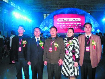 曹檢生(右二)幸運(yùn)地參加了“翔鳳”下線儀式。(資料圖片)