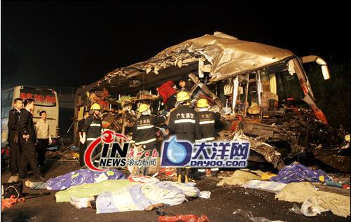 據(jù)了解,約有50多名傷者已經(jīng)被緊急送到湛江各大醫(yī)院進(jìn)行救治。據(jù)現(xiàn)場(chǎng)勘察的交警人員初步統(tǒng)計(jì),事發(fā)當(dāng)時(shí)廣西車上有57人,當(dāng)場(chǎng)死亡8人;珠海車上有19人,當(dāng)場(chǎng)死亡2人。 (記者 關(guān)家玉 通訊員漆衛(wèi)國 羅磊 王龍 岑川)