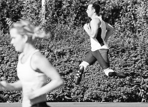 南非體育科學(xué)研究所的羅斯·塔克(RossTucker)持有類似觀點。他還指出義肢的另一特性:從來不會感到疲憊。不同于木腿簡單的支撐功能,在體重壓力作用下,運動義肢會在接觸地面時彎曲,然后在換步時彈開,從而把運動員垂直施與跑道的壓力轉(zhuǎn)化成水平方向的動力。