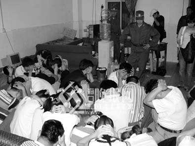 2007年7月24日零時許,當(dāng)公安干警來到賭場樓下時,由于大門緊閉,東方市邊防支隊的10名身著便裝的民警想扮成賭徒混進賭場,但被戒備心強的看場子人員擋了出來。民警只好采取強攻的辦法。東方市邊防支隊指派兩名民警翻墻入院內(nèi)打開大門,并率先沖向賭場的三樓,其余民警也緊隨其后沖進賭場。警方當(dāng)場抓獲參賭人員和為賭場服務(wù)的人員共61人,其中有賭場老板林軍、“看場”人員鄭永武、李道武和湯榮福,賭場的服務(wù)人員20人,參賭人員37人,繳獲人民幣100374元等。