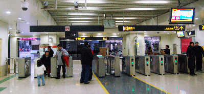 昨天下午,早報記者走訪3號線友誼路站,發(fā)現(xiàn)這段視頻的大部分畫面,應(yīng)該是該站出口閘機(jī)處右側(cè)的攝像頭所拍攝。那里正對著閘機(jī),視頻中出現(xiàn)的售票廳和淡黃色大門也在它的正前方。而視頻中切換過的一段畫面,應(yīng)該是出站口正中的攝像頭拍攝的,從其正對的角度看去,站外馬路上的鐵欄桿也與視頻中的完全相同。