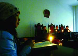 “喲,又停電了。”昨天,長沙市芙蓉區(qū)法院立案庭副庭長徐奕來到辦公室,電還沒來,她心里“咯噔”了一下:事先已通知一起交通事故案的雙方當事人前來開庭,但沒電法庭光線太暗,且不能用電腦進行庭審記錄了,按道理是無法開庭的。看著站在法庭門口冷得直哆嗦的當事人、代理人和律師,想到躺在病床上因車禍成植物人的受害者還等錢治病,徐奕決定點蠟燭開庭。