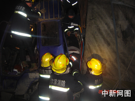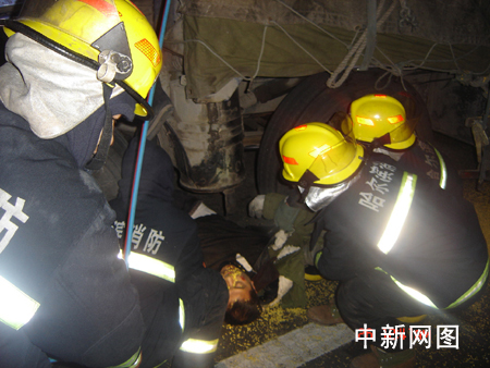 凌時三十分,太陽島消防中隊(duì)的消防戰(zhàn)士接到報(bào)警立即趕往現(xiàn)場救援。消防戰(zhàn)士趕到現(xiàn)場時看到,一輛被追尾拉著貨物的大貨車車頭與車廂之間夾了一個人,在車廂左側(cè)底下前輪旁還躺著一名男子已經(jīng)死亡,該男子穿著一件軍大衣被卡在車輪下。消防戰(zhàn)士將駕駛室后面的拉桿鋸掉,用液壓破拆組合工具將車廂與車體支開一定的距離,之后將安全繩系在被困男子的腰部,將被困人員救出,F(xiàn)場可以看到,后面的大貨車已經(jīng)嚴(yán)重變形,駕駛室與前車車廂融為一體,車上的兩人已經(jīng)被送往醫(yī)院。