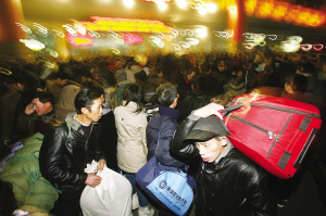 昨晚9時許,西站北廣場各進(jìn)站口的旅客排起數(shù)條長龍,站內(nèi)顯示屏顯示:值春運(yùn)客流高峰,進(jìn)出站臺旅客猛增,即日起停售站臺票,所有進(jìn)站旅客憑當(dāng)日車票于開車前4小時內(nèi)進(jìn)站候車。站內(nèi)廣播多次播放通知,為保證旅客安全,站內(nèi)地下二層開通臨時候車區(qū)。