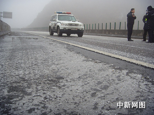 記者同時(shí)看到,路面的冰凍足有五、六厘米厚,幾臺(tái)推土機(jī)正在進(jìn)行破冰作業(yè)。但據(jù)稱收效不是很大。而在廣東京珠北樂(lè)昌云巖路段,路面結(jié)冰最厚的近二十厘米。