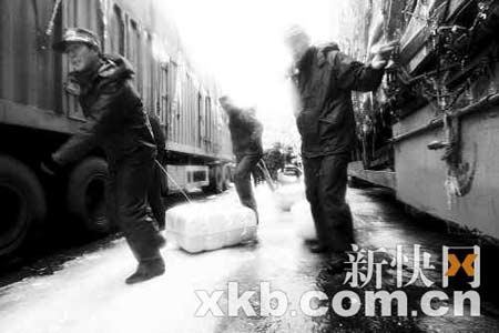 由廣東省交通廳從韶關(guān)、廣州等地調(diào)集的十余臺推土機和平地機,昨天全部抵達(dá)廣東京珠北有關(guān)路段,展開破冰作業(yè)。在推土機的重壓下,寒冰被碾碎,灑鹽車緊隨其后往路面上撒鹽,逐步清出一段段不再打滑難行的路來……
