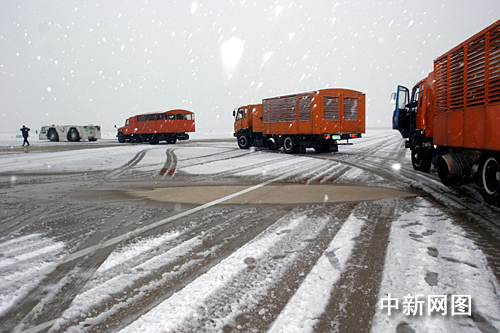 凌晨3時,蕭山機場已投入3輛吹雪車,同時對跑道進行吹雪,組織工作人員對機坪進行清掃,并且對將要起飛的航班進行機身除冰。