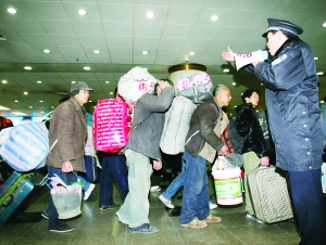 昨日下午4時,北京西站已對候車乘客采取限流措施,車站候車大廳內(nèi)人頭涌動。大屏幕上顯示,發(fā)往廣州、昆明、南昌等地的10余趟列車晚點,屏幕下,一些乘客焦急地仰望著。