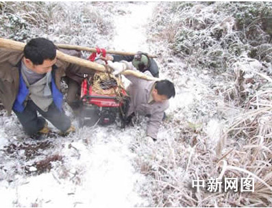 在惡劣的環(huán)境中,維護人員或是把200多斤重的油機和汽油扛在肩上,或是用老舊的手推車推著,一邊用鐵棒、扳手破冰,一邊艱難跋涉前行。有的肩膀上的皮磨破了;有的手腳給植物的刺刮傷多處,還有的凍傷了腳、扭傷了腰,但搶修人員依然忍受著嚴(yán)寒,堅守在維護搶修一線,終于逐步把停止運行的通訊機站一個個修復(fù)。