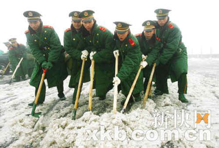 目前梅花至大橋(K24-K51)雙向結(jié)冰仍很?chē)?yán)重。截至昨晚9時(shí),因?yàn)樘靸鱿掠,京珠北雙向繼續(xù)封閉。從湖南郴州方面獲悉,郴州軍分區(qū)已調(diào)派裝甲車(chē)趕赴重災(zāi)路段進(jìn)行碾冰任務(wù)。由于有新冷空氣補(bǔ)充南下,粵北地區(qū)持續(xù)降溫,氣溫基本維持2℃-5℃,最低氣溫為-1.8℃,濕度達(dá)95%,同時(shí)還下起了中雨,又起了大霧,能見(jiàn)度不足30米。惡劣的天氣給京珠北破冰工作帶來(lái)了很大壓力。昨天,京珠投入的機(jī)械設(shè)備增到260臺(tái)套,分80個(gè)班次不停作業(yè)。這些機(jī)械包括鏟車(chē)38臺(tái)、推土機(jī)16臺(tái),人員約1500人。昨天破冰里程已經(jīng)達(dá)到52公里,但由于下雨及路段最低溫度已降至-3.8℃,結(jié)冰始終在加劇。前晚已經(jīng)打通的南下通道,進(jìn)入晚間后再次出現(xiàn)持續(xù)降雨及氣溫迅速下降現(xiàn)象,路面再度迅速結(jié)冰,并逐步加劇,達(dá)到65公里左右。