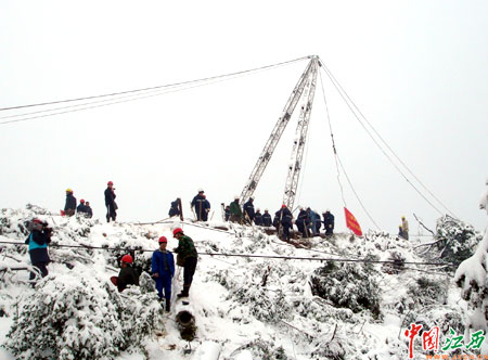 隨著災(zāi)情的進(jìn)一步加劇,萍鄉(xiāng)市人民政府在當(dāng)日下午18時(shí)隨即啟動(dòng)了大面積停電事故應(yīng)急預(yù)案Ⅰ級(jí)響應(yīng),市委書記謝亦森、市長(zhǎng)曾慶紅等市領(lǐng)導(dǎo)先后來(lái)到萍鄉(xiāng)供電公司,了解指導(dǎo)電網(wǎng)抗冰搶險(xiǎn)與電力供應(yīng)保障工作。供電部門也加緊了對(duì)受損電網(wǎng)的搶修。萍鄉(xiāng)巨大的災(zāi)情引起了省電力公司的高度重視。1月25日,省電力公司總工程師譚永香親臨萍鄉(xiāng),深入蓮花縣現(xiàn)場(chǎng)視察災(zāi)情,指導(dǎo)萍鄉(xiāng)供電公司做好抗冰搶險(xiǎn)保供電工作;1月30日,省電力公司黨組書記、總經(jīng)理毛日峰又委派了省電力公司副總經(jīng)理肖黎春火速趕往萍鄉(xiāng),坐鎮(zhèn)指揮和督導(dǎo);在1月24日調(diào)集了省水電工程局和武警水電總隊(duì)共180余名增援隊(duì)伍后,1月30日,省電力公司又調(diào)集贛州供電公司近30名精兵強(qiáng)將強(qiáng)力增援萍鄉(xiāng)。至此,加上萍鄉(xiāng)供電公司和贛萍公司的搶修人員,一共有近3000名電力員工投入到萍鄉(xiāng)電網(wǎng)抗冰保供電中。