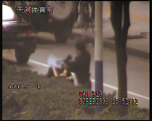 據(jù)事件目擊者賈先生稱,昨日下午4時多,他跟同事經(jīng)過位于正佳廣場東面的大廈時,目睹了董某對交警施暴,“那個交警任他打,一點都不還手!辟Z先生說。而坐在監(jiān)控室里的一名交警則從錄像中看到了阿華被打的全過程。該名交警告訴記者:“我看著那個錄像,真是急。〈蛉说哪莻人很高大,估計有一米八幾,是個二十出頭的年輕小伙。他一路追著阿華打,阿華退了七八米,他還是繼續(xù)打,還使出鷹鉤拳,并用腳踢阿華的腹部。”