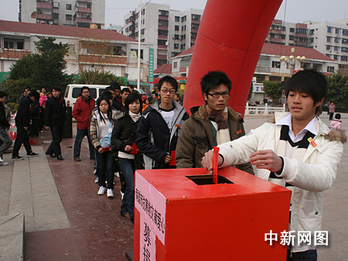 中新網(wǎng)韶關(guān)2月10日電 (馮昶 朱祖純 曾誠) 大年初三,廣東南雄市三影塔景區(qū)廣場內(nèi)人流涌動,一場聲勢浩大的“我與災(zāi)民心連心”募捐活動正在舉行,來自各條戰(zhàn)線的干部、企業(yè)等數(shù)千人紛紛伸出援助之手。引人注目的是一批當(dāng)?shù)卦谕獯蚬さ那嗄耆恕W(xué)生和社團組織自發(fā)捐款,用真情表達對今年冰雪災(zāi)區(qū)民眾的一片愛心。