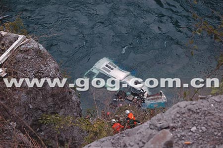 2月12日14時(shí)30分,一輛車牌號為貴C09318的大客車行駛至仁懷市合馬鎮(zhèn)鯉魚灘S208X線109KM+150M處,墜入50多米深的赤水河中。截至2月13日下午止,現(xiàn)場搜救工作已全部結(jié)束,該事故共造成23人死亡,2人重傷,11人輕傷。