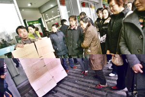 昨日中午1時許,兩名男子和一名婦女來到儲蓄所門前,高舉一個寫有“我在這里取到假錢”的紙牌子。舉牌子的男子叫汪登渝,長壽人,是進城務(wù)工的農(nóng)民工!拔易蛱熘形缭谶@取了5000元準備借給小舅子,半小時后我們走到家樂福后發(fā)現(xiàn)錢是假的。”汪說,當時他在自動取款機上分三次取錢(前兩次各取2000元,第三次取1000元),點清數(shù)額后將現(xiàn)金和卡帶離儲蓄所,隨后來到家樂福買東西時發(fā)現(xiàn)異常,“我看到錢上的頭像是黃色的,就覺得有問題!蓖舻男【俗狱S先生說。不過,對于汪登渝半小時內(nèi)的行程,只有其小舅子能夠作證。
