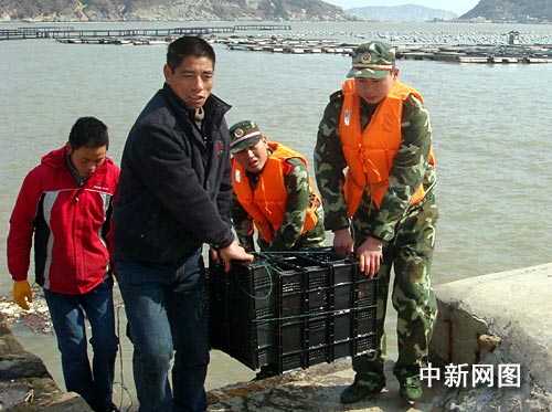 持續(xù)寒冷的天氣連魚也受不了,春節(jié)過后南麂島網(wǎng)箱里的養(yǎng)殖魚開始陸續(xù)出現(xiàn)凍死現(xiàn)象,魚排上漂浮著一條條被凍死的魚兒。災(zāi)情發(fā)生后,溫州邊防支隊(duì)南麂邊防派出所迅速組織官兵幫助漁民群眾清理打撈死魚,并及時(shí)將未凍死的魚轉(zhuǎn)移到溫室中進(jìn)行養(yǎng)殖,盡量降低災(zāi)害帶來的損失。