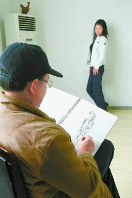 昨日下午2時(shí),位于成都郊區(qū)的一個(gè)鄉(xiāng)間普通畫室里,用鴨舌帽遮住了滿頭銀發(fā)的四川著名畫家陳老正有條不紊的打開(kāi)空調(diào)、兩個(gè)電熱器。在畫室的一角,秦華正對(duì)著窗戶灑下的陽(yáng)光調(diào)試自己的角度,用稍顯生疏的肢體尋找著遙遠(yuǎn)的藝術(shù)感覺(jué)。她已經(jīng)有半年沒(méi)有親自當(dāng)過(guò)人體模特了,這次因?yàn)槭墚嫾已?qǐng),是創(chuàng)作需要,卻與金錢無(wú)關(guān)。