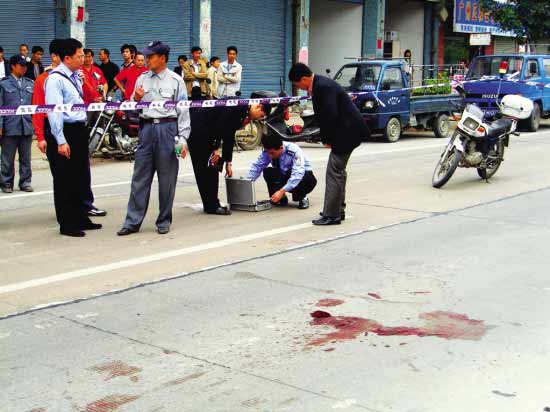 目擊者張先生告訴記者:“上午10點(diǎn)左右,林醫(yī)生的兒子騎著自行車來(lái)到現(xiàn)場(chǎng),突然拿出一把30公分長(zhǎng)的豬肉刀,沖入配件店內(nèi),店主小肖見勢(shì)不妙,奪路而逃,林剛悟上去就是一刀。小肖捂著傷口跑到隔壁門店,誰(shuí)知道剛靠上墻柱,又被他砍了一刀,血濺滿柱。”據(jù)其他目擊者回憶,剛悟當(dāng)時(shí)就像死神一樣,無(wú)論小肖跑到哪里,他都死死咬住不放!靶⌒づ苓^(guò)幾個(gè)門面后,沖過(guò)馬路逃到對(duì)面的牌坊,還是被他追到砍翻在地。這時(shí),有旁觀者才醒過(guò)神來(lái),報(bào)警救人,可是傷者傷勢(shì)很重,送醫(yī)院也沒(méi)有搶救過(guò)來(lái)” 。