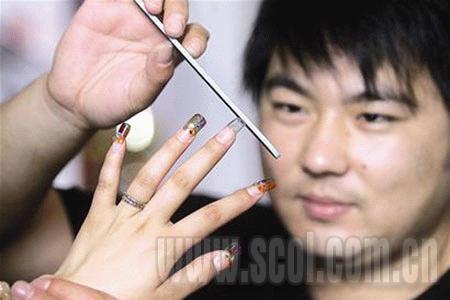 雖然男性美甲師在成都并不多見,然而就全國而言,男性美甲師卻并不新鮮:據(jù)業(yè)內(nèi)人士估計(jì),男性美甲師已占到從業(yè)人員的10%左右。而全國一年一度的“十大美甲師”評選中,每年都會(huì)有6—8名男美甲師入選。 (記者譚曉娟攝影華小峰)