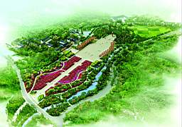 廣場入口與休閑空間自然過渡,設(shè)計(jì)成“直角梯形”平面,面積約為1950平方米。在鋪地中增加一處綠地花壇,面積約153平方米。在大花壇安放自然景石,上刻“中國出了個毛澤東”,襯以五線譜背景,景觀石的背面題刻鄧小平對毛澤東的評價(jià)。突出入口的引導(dǎo)、過渡、游客集散的作用。