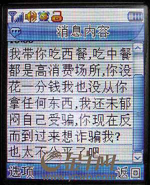 在網(wǎng)上,阿丹不斷給呂××發(fā)質問信息,之前曾說深愛阿丹的呂××卻開始顯得有些不耐煩。2月6日晚11時許,阿丹發(fā)短信質問呂××是否在欺騙感情,××網(wǎng)上的交友信息是否也一直在發(fā)布。對方回復稱“不明白你在說什么”。