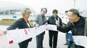 今天,北京奧運圣火將在雅典點燃,隨后開始盛大的奧運火炬?zhèn)鬟f活動。昨天,市民劉長盛帶著自己親手繪制的火炬?zhèn)鬟f城市圖長卷,在市奧體中心前與市民分享快樂,為北京奧運加油。