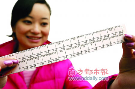 “日前,廣州一家報紙在一個討論薪酬問題的版面上用了一張新聞圖片,網友驚訝地發(fā)現(xiàn)圖片中人物手持的工資條顯示其當月收入5935元,個人所得稅一欄卻顯示為0.00.因為工資條上有職務工資、級別工資、警銜津貼等項目,很多網友認為這是一張廣州市公務員的工資條,并推論公務員不用交個稅。