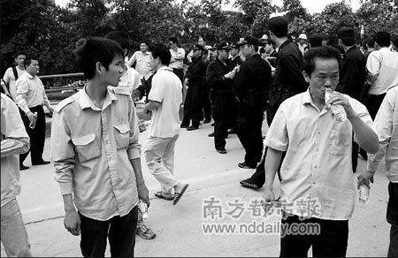 大批保安與警員前來(lái)處理事件,部分司機(jī)仍未離去。