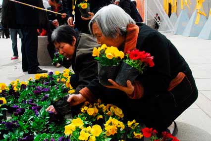然而,當(dāng)盛典結(jié)束后,卻出現(xiàn)了一幕鬧劇。本來是用作祭拜和裝飾的鮮花,在公祭大典結(jié)束后成為了市民哄搶的目標(biāo)。而這一切均被當(dāng)時在場的人民日報記者趙亞輝用相機(jī)記錄了下來,并發(fā)表在自己的博客上。