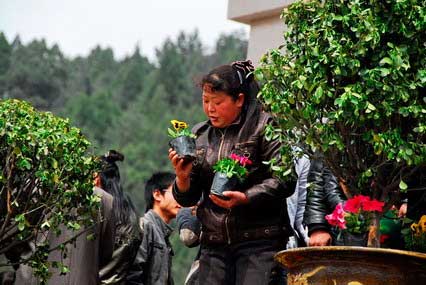 趙亞輝在博客上說,自己正在參加由人民日報組織的跨時代回訪———“重走中國西北角”,4月4日正好趕上了一年一度在黃帝陵舉行的清明節(jié)公祭黃帝大典。自己祭拜完黃帝陵后,下山時再次途徑舉行大典的軒轅殿,卻被眼前的景象驚呆了:“廣場上不少人手里抱著一盆盆、一束束花,還有很多人正在搶著把擺放在大殿上下臺子上的小花盆拿走。