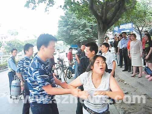 這個(gè)暴力抗法的女?dāng)傌溡驯粠项^派出所接受調(diào)查,并被處以三天拘留懲罰。同一天,桃源街道也發(fā)生了暴力抗法事件。16名綜合執(zhí)法隊(duì)隊(duì)員受傷。桃源街道黨工委書記、辦事處主任廖澍華說,在執(zhí)法時(shí)錄像的隊(duì)員比較容易受到攻擊,建議錄像時(shí)是否可以著便衣,或分開行動。(賴良青)