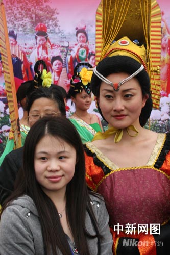 中新網(wǎng)4月19日電 (李洋)4月正是牡丹盛開的時(shí)節(jié)。“網(wǎng)上看河南”采風(fēng)團(tuán)18日先后探訪了洛陽國際牡丹園和國家牡丹園,遍賞中國和世界的名貴牡丹品種。當(dāng)?shù)剡組織演藝團(tuán)體盛裝重現(xiàn)唐朝武則天時(shí)期的風(fēng)貌,不少女記者對武則天這一歷史人物情有獨(dú)鐘,還紛紛與“武則天”合影留念。