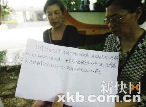 昨日追悼會舉行前,到場幾家媒體記者擔(dān)心打擾譚母,一直未曾上前與其交談,只是遠(yuǎn)遠(yuǎn)看著,直到譚靜好友都已經(jīng)到齊,追悼會馬上開始的時(shí)候,觀察譚母精神略好了一些方才走近,向其問好后交談了不到一分鐘,期間譚母聽得多,回答得少,在采訪的最后,譚母忽然從包里拿出一張事先寫好的紙條展開,“要說的全在里面了!庇浾呖吹,紙條上寫著如下的話語,“譚靜是個(gè)自強(qiáng)自愛、活潑開朗的好女孩,自殺是絕對不可能的,至于說她每日喝酒度日,和有關(guān)她爸被害前大吵一架,純屬謠言,這事情就到此為止吧,別再讓我們雪上加霜了!闭故就昙垪l后,譚母回到靈堂里參加追悼會了。