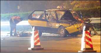 工人們正在封閉區(qū)域內(nèi)作業(yè)時,慘劇突然發(fā)生。一名工人說,突然,一輛出租車穿越他們設置的路障,重重地撞到小貨車上。