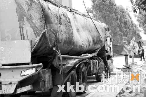 出事車(chē)輛所屬的運(yùn)輸公司派來(lái)了一輛油罐車(chē)及搶修隊(duì)到事發(fā)地進(jìn)行倒灌。由于硫酸罐車(chē)嚴(yán)重側(cè)翻,加上水泵壓力,該公司搶修隊(duì)經(jīng)過(guò)2個(gè)多小時(shí)的幾番嘗試后,仍未能實(shí)施倒灌救援。