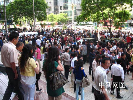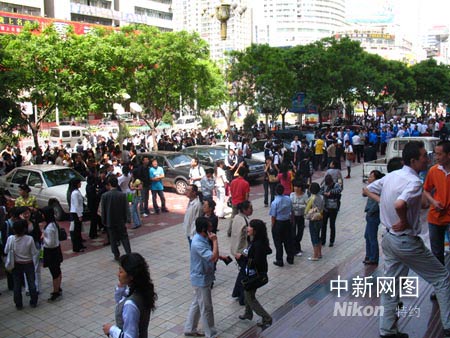 中新網(wǎng)蘭州5月12日電(劉薛梅) 今天下午兩點(diǎn)二十八分,四川汶川縣發(fā)生了七點(diǎn)八級(jí)地震,甘肅蘭州市有明顯的震感,市民們都紛紛往樓下跑去,大街上頓時(shí)聚集了不少人群。隨后街道上道處都是一片打電話(huà)的情景,詢(xún)問(wèn)家人是否平安。