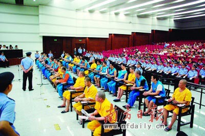昨日,參與開庭審理這起黑社會性質(zhì)組織犯罪案件的旁聽人員有被告人員家屬等社會各界人士共500人左右,其中包括禪城區(qū)人大代表和政協(xié)委員40多人。除此之外,還有參與押送、維持法庭審理秩序的法警和公安民警多達200人左右,以及36名被告人的辯護律師22人、禪城區(qū)檢察院公訴人員5名。該案開庭審理規(guī)模之大,備受社會各界高度關注,是禪城區(qū)法院成立以來所罕見的。