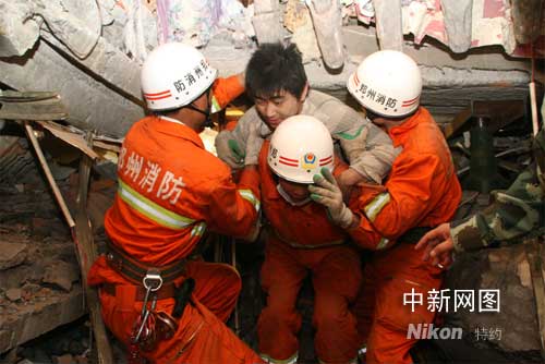 到十六日晚10時(shí)38分,經(jīng)過8個(gè)多小時(shí)的連續(xù)奮戰(zhàn),這名被困廢墟中的20歲男子被成功救出,而此時(shí),他在廢墟中已被困了104小時(shí),創(chuàng)造了生命的奇跡。他的名字叫李青松。完