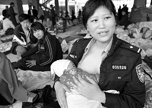 29歲的蔣小娟是江油公安局的一名民警,也是一名6個(gè)月男嬰的母親。地震后,她的家也成了危房,孩子送到鄉(xiāng)下婆婆家照顧,她仍每天在災(zāi)區(qū)執(zhí)勤。