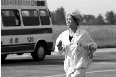 昨天下午4點(diǎn)05分,東方通用航空公司的一架米1-71直升機(jī)緩緩降落在廣漢機(jī)場(chǎng)停機(jī)坪上。艙門(mén)打開(kāi),40歲的女護(hù)士杜娟下了飛機(jī),招呼著成都120急救中心的醫(yī)護(hù)人員將傷員抬到急救車(chē)上。杜娟是北川縣禹里羌族鄉(xiāng)衛(wèi)生院的護(hù)士。5·12地震后,禹里與世隔絕,直到昨天才等到直升機(jī)將重傷者送出。杜娟隨機(jī)照顧患者。傷員都下了飛機(jī)后,杜娟向于波借手機(jī),電話打通時(shí),她手開(kāi)始顫抖,撕心裂肺的哭聲終于無(wú)法忍住。那是她六天后,第一次給外面的親人打電話。巨大的螺旋槳轉(zhuǎn)動(dòng)聲中,人們只能依稀聽(tīng)到她的哭訴:“我要去找他,不能連個(gè)尸體都沒(méi)有!庇诓乜粗坏揭粋(gè)小時(shí)前,他還覺(jué)得這個(gè)女護(hù)士嚴(yán)厲得有點(diǎn)過(guò)分。