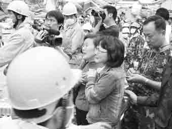 這時(shí)記者碰到一位從貴州遠(yuǎn)道而來(lái)的母親龍金玉,她20歲的兒子蔣雨航埋在映秀一處坍塌的建筑里,生死不明。龍金玉哭著說(shuō),她從13日就得知兒子被埋了,新聞里和兒子單位的人一直說(shuō)道路不通,她已經(jīng)連續(xù)4天幾乎沒(méi)吃任何東西了。15日她和家人到達(dá)成都,她再也不能等了,今天早上一個(gè)人偷偷溜出來(lái),不管道路通不通,一定要到映秀。