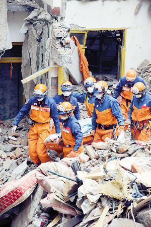 昨晨(5月18日),在重災(zāi)區(qū)(四川。┚d陽市北川縣北川中學(xué)施救現(xiàn)場,多了幾十名國外救援者的身影——他們是日本國際應(yīng)急援助隊(duì)的隊(duì)員。截至昨下午1時,日本救援隊(duì)已找到深埋樓底的6名學(xué)生遺體。
