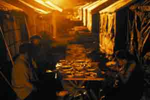 2008年5月19日晚,都江堰一正在分批搭建的臨時(shí)災(zāi)民安置區(qū),災(zāi)民在帳篷外面的空地吃飯。攝影(除署名外) 記者 王申