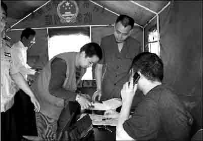 昨天,在什邡市區(qū),開業(yè)的商店在增多,交通運(yùn)輸在恢復(fù),政府機(jī)關(guān)在堅(jiān)持上班,受災(zāi)群眾在一步步得到安置,工作生活秩序正在走向正常。維持和捍衛(wèi)著秩序的法院,在受災(zāi)群眾中間,用帳篷搭建起第一座災(zāi)后臨時(shí)審判庭。