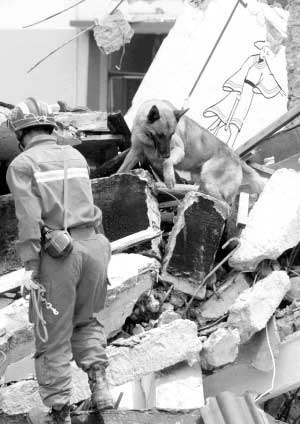 它的身影從抗震救災(zāi)一開始便出現(xiàn)在人們的視野中,它的工作地點(diǎn)在坍塌廢墟,用靈敏的鼻子捕捉最微弱的生命氣息——它們就是被網(wǎng)友尊稱為“不會(huì)說話的天使”的搜救犬!此次汶川大地震發(fā)生后,國家地震局應(yīng)急搜救中心共派出12只具有高級(jí)職稱的搜救犬,僅在映秀,它們就搜索出17名埋在廢墟里超過3天以上的被困者,映秀鎮(zhèn)最后兩名被困者虞錦華和馬元江能夠成功被救出,搜救犬都立下了汗馬功勞。