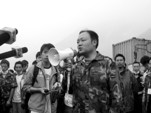 廖敏:情況很差,房子倒了很多。當(dāng)時(shí)我們餓了一天多,村民們就把掛在屋里的玉米棒子給我們,我們就烤了吃。村里的糧食儲備也不多,我們和鄉(xiāng)政府的人估計(jì)了一下,就能支撐個3、5天。于是我們把村民組織起來,告訴大家情況,然后限制供應(yīng)糧食,每人每天只能領(lǐng)1斤大米。14日的時(shí)候,由于擔(dān)心汶川縣城,我?guī)Я?個人準(zhǔn)備徒步去映秀,但走了8公里后,又遇到余震,山石不斷滾落,我們不得不返回原地。