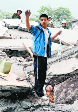 李陽并不特別出眾,如果不是這場大地震,他的日子應(yīng)該會平靜流過。但是這個男孩在這場大地震中“非比尋!钡呐e動,卻成為一個關(guān)于生命和希望的符號。