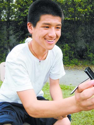 “李陽從重慶回來了!痹谖挥诰d陽長虹培訓(xùn)中心的北川中學(xué)復(fù)課點門口,同學(xué)們這樣半開玩笑地打趣,“這小子都成名人啦!”記者來到他所住的學(xué)生帳篷內(nèi),人不在,想到他是個酷愛籃球的孩子,于是決定到籃球場去碰碰運氣。略有些簡陋的籃筐下,幾個男生正玩得不亦樂乎,場上身手最敏捷的那個果然就是李陽。