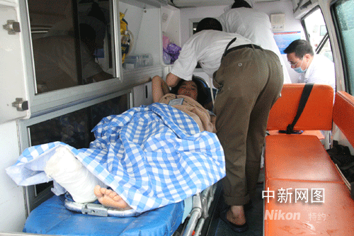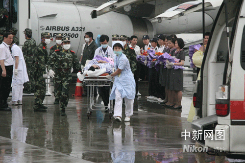 十一點(diǎn)左右,傷員一個(gè)個(gè)被武警官兵抬出飛機(jī),并送上等候在停機(jī)坪上的三十六輛救護(hù)車,并被迅速送往浙江金華三家最好的醫(yī)院接受治療。