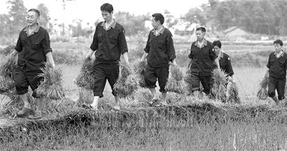 昨日上午,一支由12人組成的志愿者隊(duì)找到曾世明:“能不能為你做點(diǎn)兒事?”走在前面的是名40歲左右的男子,他叫靳少云。讓曾世明意外的是,靳少云竟是重慶某公司的總經(jīng)理。跟在他身后的11名男子,都是這家公司的高管。曾世明“很不放心”地把靳少云等人帶到田間,這12名志愿者挽起褲管下田了。拔秧、插秧,一行人干得非常熟練,要不是看到穿在他們身上的統(tǒng)一著裝以及粘貼在他們衣服上的紅十字會(huì)標(biāo)記,還很難讓人聯(lián)想到,他們是呆在辦公室內(nèi)的白領(lǐng)(上圖)。幾個(gè)小時(shí)后,2畝左右的水田披上了“綠裝”。(記者王仁剛鐘蓉 攝影譚曦)